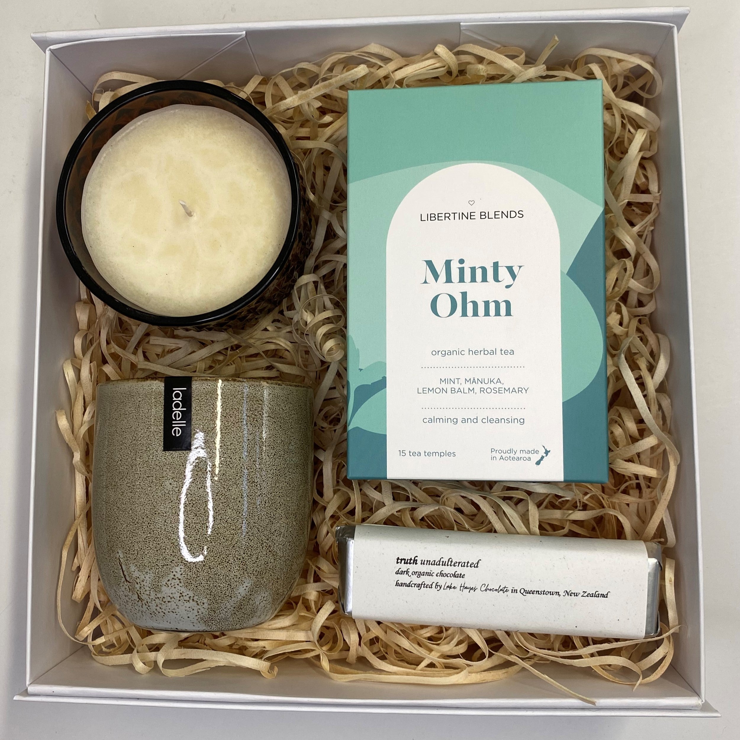 The Tea Time gift box is the perfect way to treat yourself or a loved one to a cozy and relaxing afternoon tea experience. This beautifully curated gift box includes the delicious Libertine Blends tea, along with Lake Hayes dark organic chocolate and a divine Vanilla soy wax candle - ultimate relaxation.