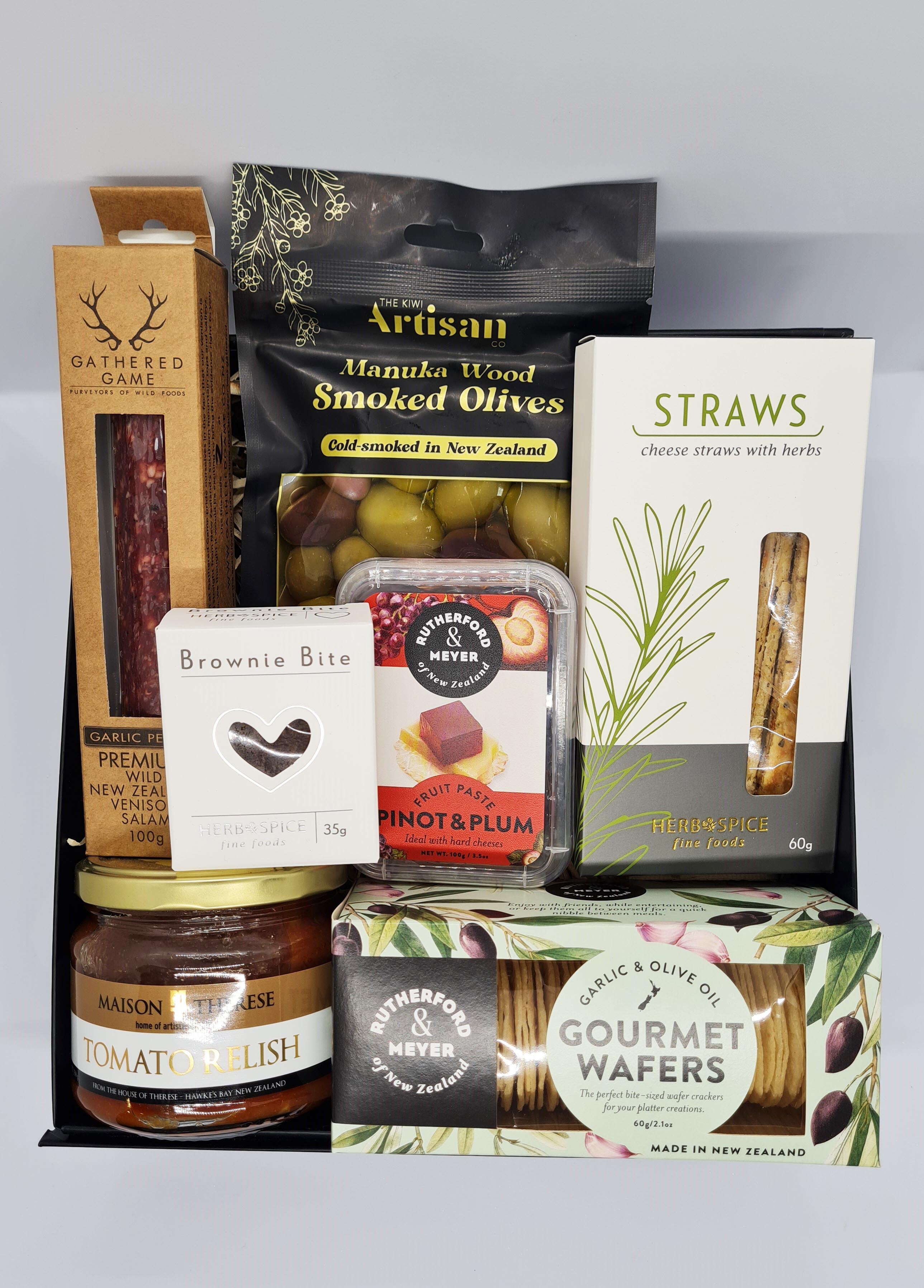 What’s not to love about this? Beautiful high quality products, everything you need for that perfect platter or picnic. This is a fantastic thank you, Christmas or corporate box filled with goodies for everyone.